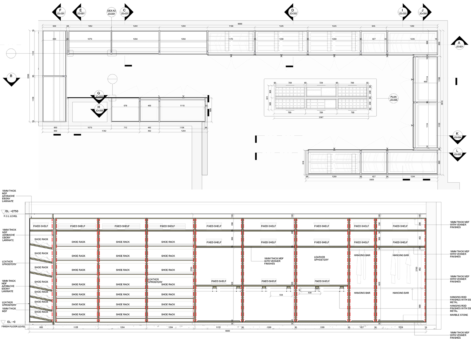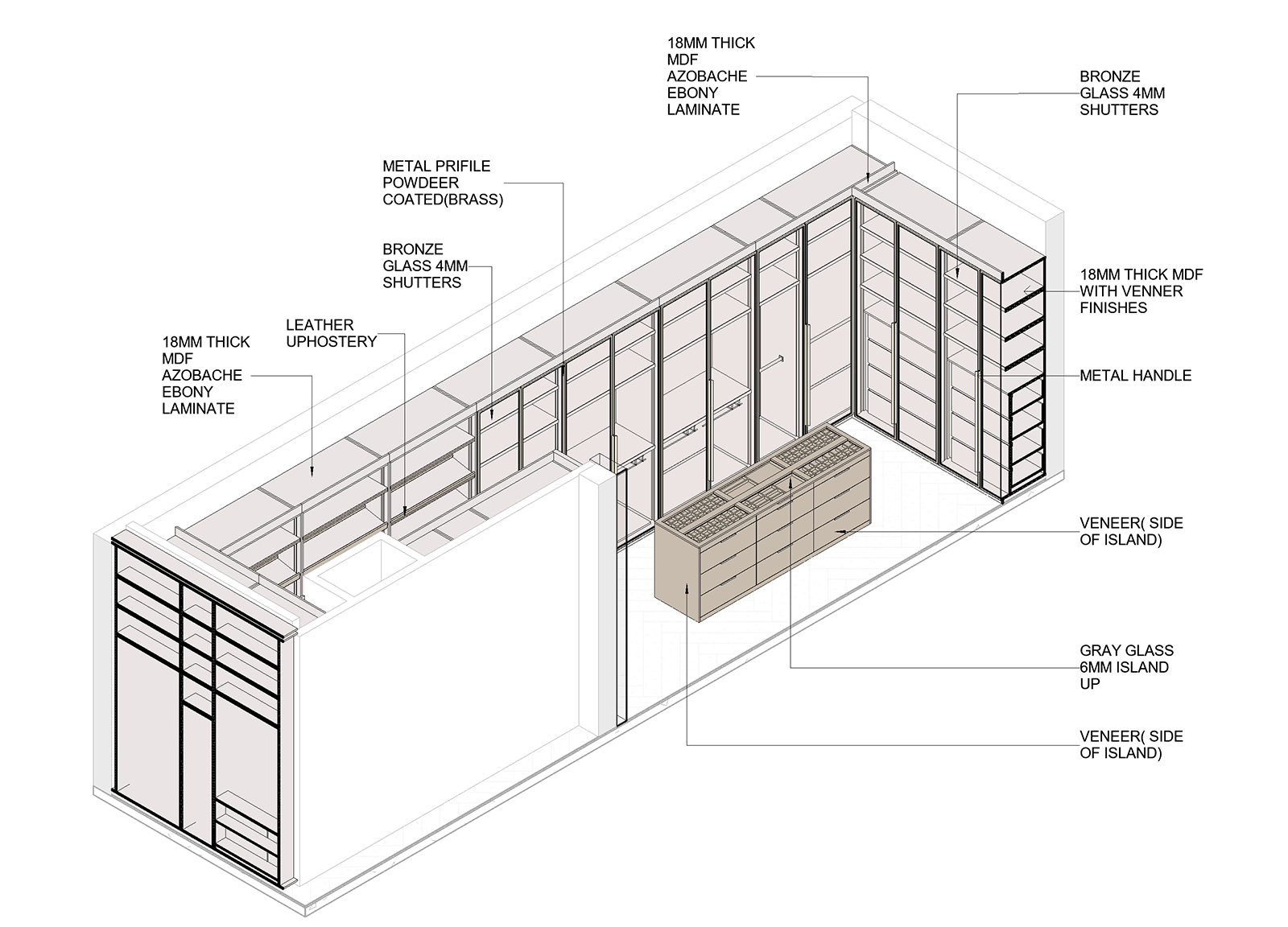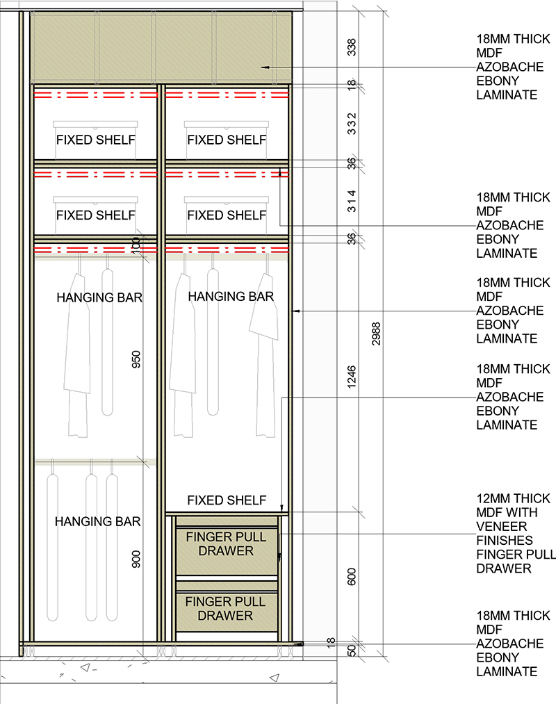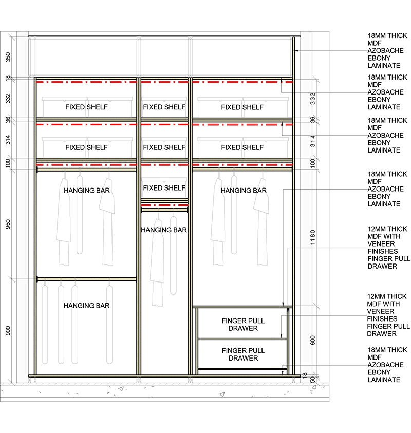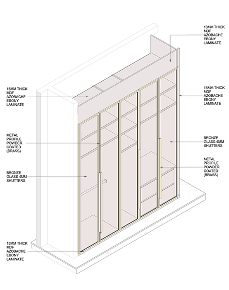 For this project, our team was responsible for preparing the shop drawings of the closet. The drawings were developed with precise dimensions and detailed specifications, ensuring full alignment with construction requirements and providing a reliable reference for the execution team